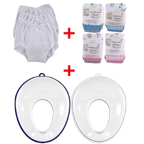 Our premium Luvable Friends layette collection of unique baby clothing and baby care products features 100% combed cotton interlock for the softest touch on your baby's gentle skin. Our training pants are generously sized and elasticized at the waist for comfortable fit. Assorted with 1 print, and 2 coordinating solids, and the 15 come as a mix of sets of boy or girl and white, depending upon color and size availability. The Potty Trainer Seat is great for when it's time to teach your little one how to use the toilet. Rubberized edges grip the toilet seat for added stability, and the rubber hanging hook allows you to store in conveniently when it's not in use. The comfortable seat fits most standard toilets, and is great for children ages 9 months and up. Measures 14.5" x 12" x 3.5" and the set is available in 2 color themes and 4 different sizes: 2, 3, 4 & 5.