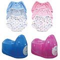 Our premium Luvable Friends layette collection of unique baby clothing and baby care products features 100% combed cotton interlock for the softest touch on your baby's gentle skin. Our training pants are generously sized and elasticized at the waist for comfortable fit. Assorted with 1 print, and 2 coordinating solids, and the 15 come as a mix of sets of boy or girl and white, depending upon color and size availability. The Simple Potty is a great way to encourage your little one to take that next step in potty training. With a sleak and easy to clean design, it sits low to the ground and rests solidly on the floor for greatest stability and security. Measures 13.5" x 9.8" x 8" and the set is available in 2 color themes and 4 different sizes: 2, 3, 4 & 5.